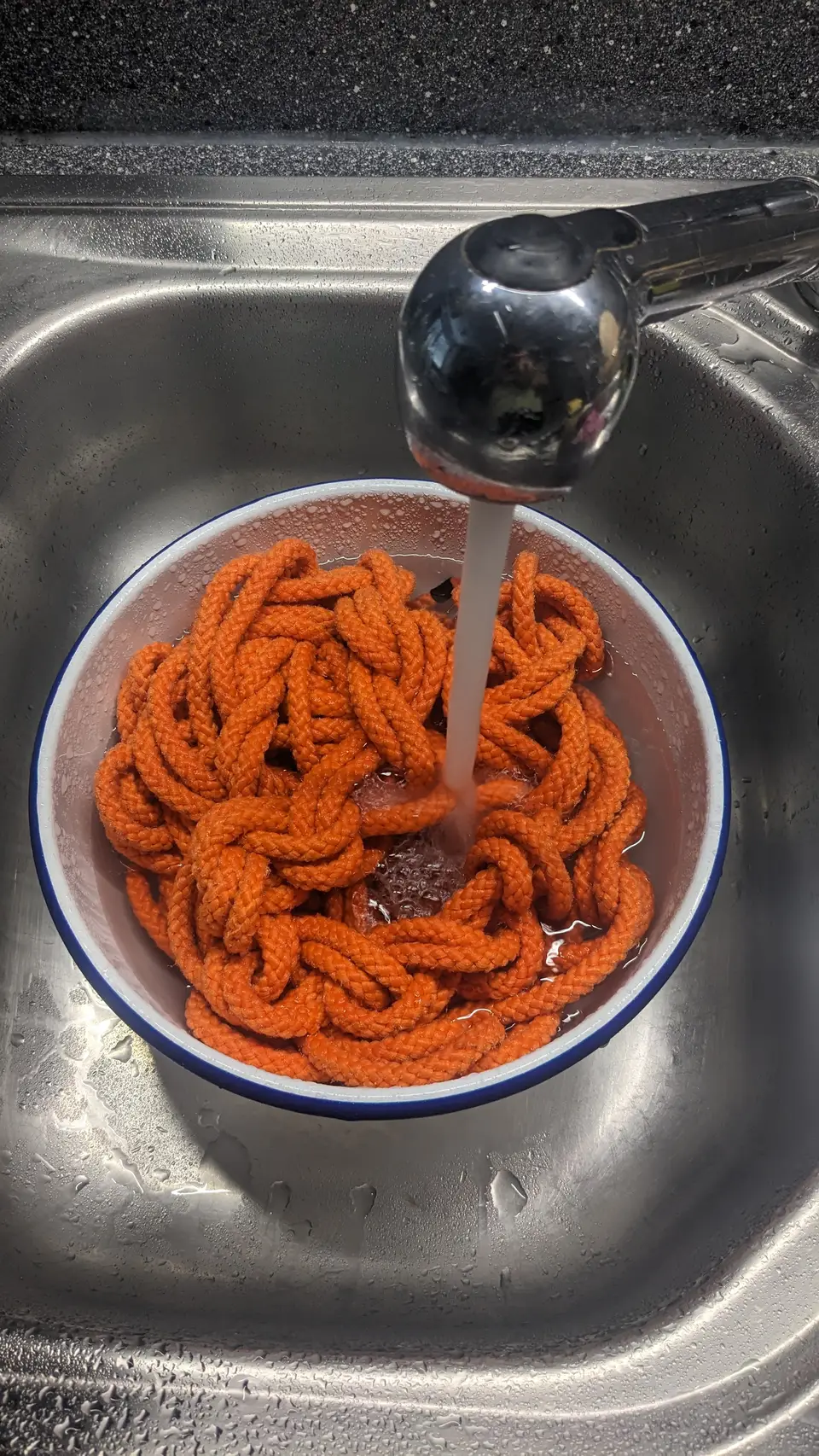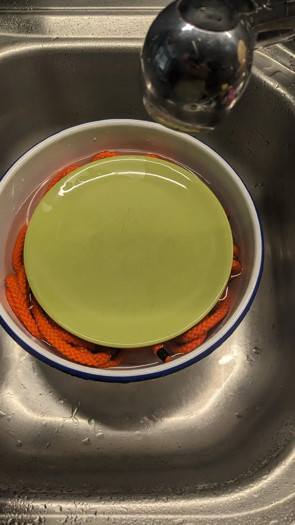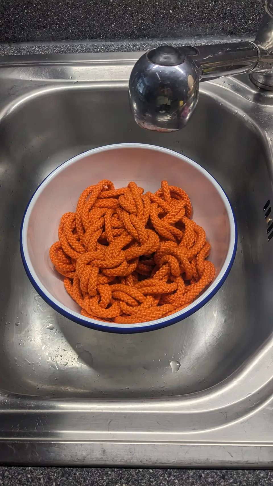 3. Fill the bowl with warm water ~30-35°C until the rope is coverd.
